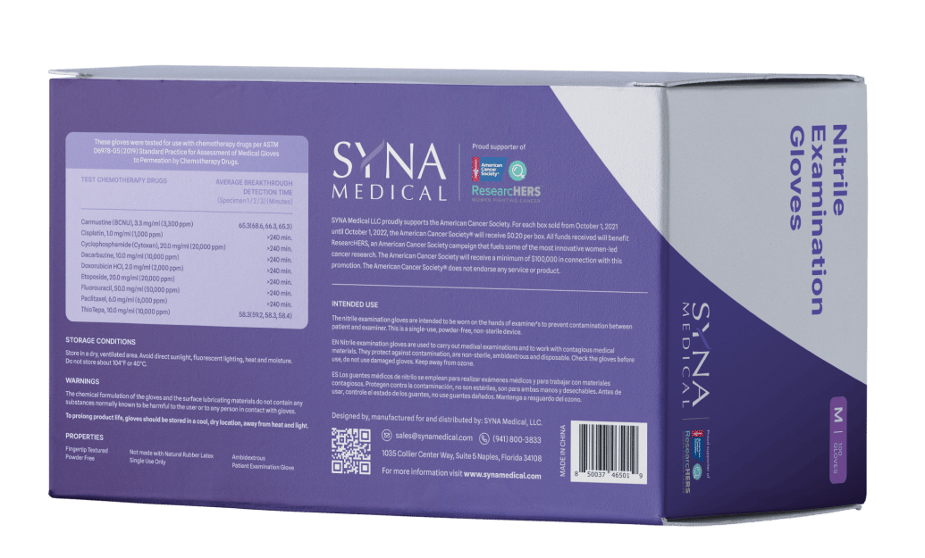 SYNA Patient Examination Gloves are designed and conceived in the U.S.A. based on premier specifications and a proprietary formulation that surpasses the most demanding requirements of health-care providers, exceeding ASTM D6319 and ASTM D6978 standards.